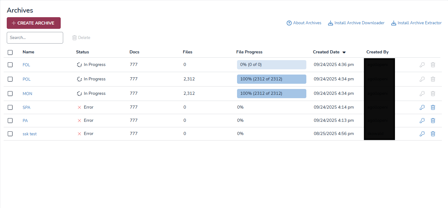 By default, Instance and Company Admins have the ability to manage archives in both the Companies > Archives and Jobs > Archives tabs, while Project and Client Admins can manage archives only within their assigned product via the Jobs > Archives tab.