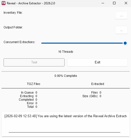 Extracting archives requires Reveal’s Archive Extractor, which can be downloaded using the link in the upper-right corner of the Archives tab (see below). Archive Extractor is available for MacOS, Windows, Windows (Command Line), and Linux.