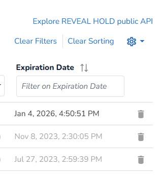 Revel Hold’s Public API gives users control over Reveal Hold functionality directly from within their own application/administrative portal. Public APIs provide access to the configuration and orchestration of certain tasks, thereby enabling external developers to control some of the product's functionality required for workflow automation.