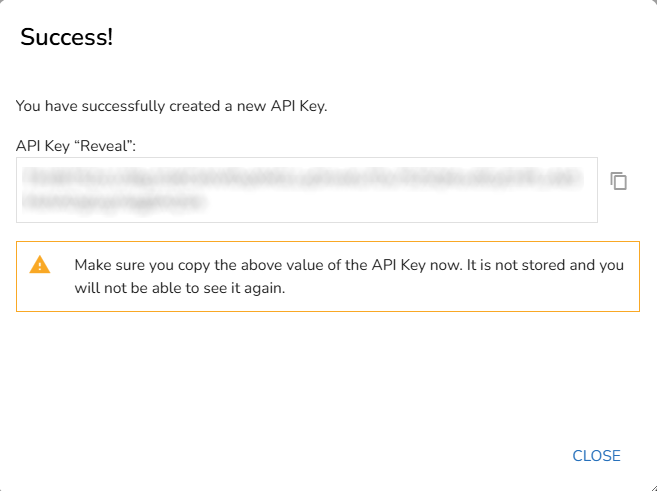 The API Key will be created. Copy the API key and click Close.