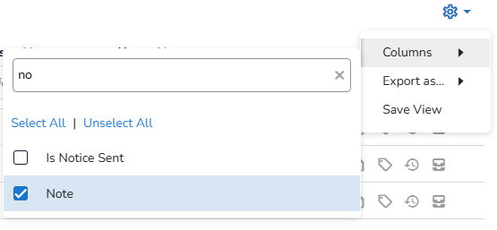 To add/remove columns, select the Settings icon
