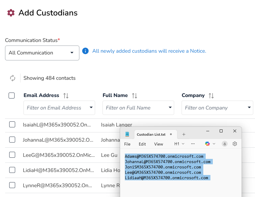 .The Add Custodians pop-up screen appears.