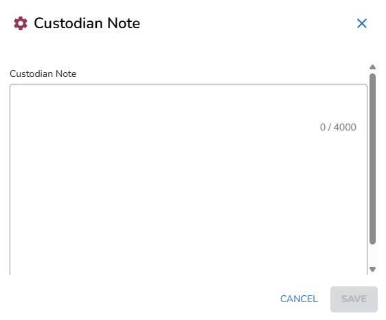 The Note icon will turn blue to indicate a note has been attached to that custodian.