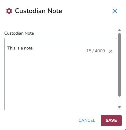 Notes can be added to custodians to help organize, filter and search.