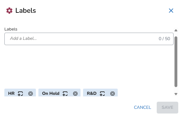Labels help to organize matters, holds and custodians. You can quickly search and filter using labels.
