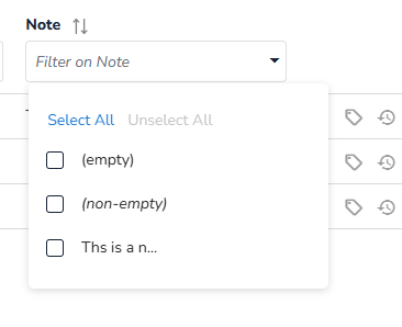 Click Filter on Notes to quickly search for specific notes or records containing notes.
