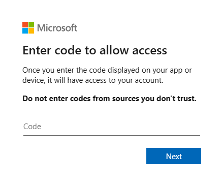 Authenticate the integration. First, copy the code. Then, go to https://microsoft.com/devicelogi.