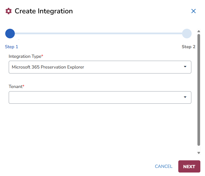 Select the Integration Type and the Tenant. Click Next.