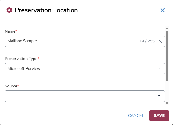 For example, Email 365 (Name), Microsoft Purview (Preservation Type) and Mailbox (Source) for in-place preservation.