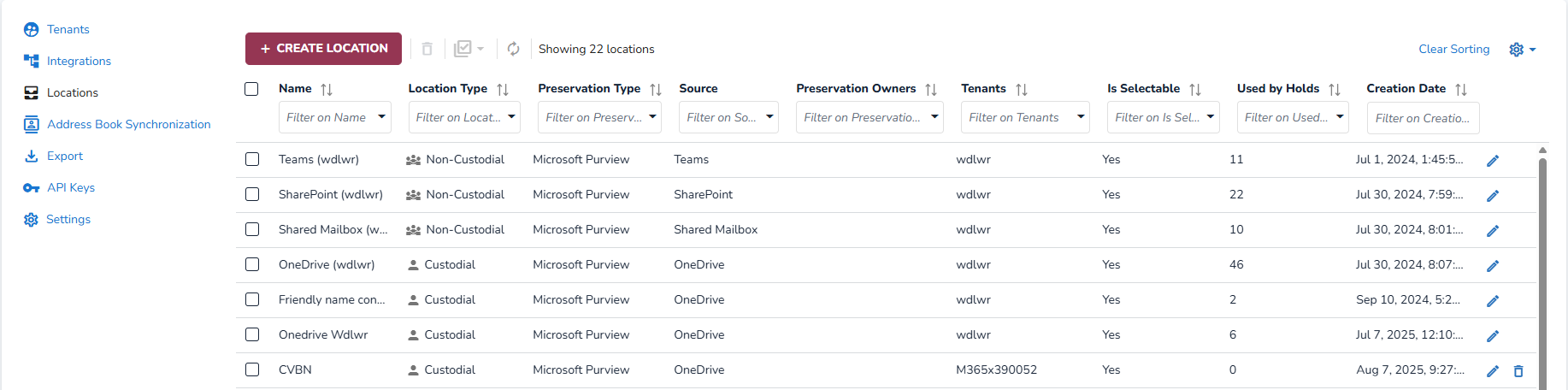Locations are used when creating a hold to define the data that needs to be preserved.