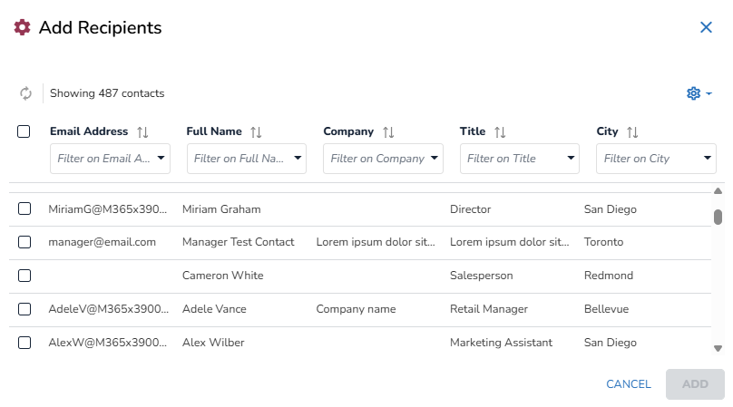 Define the recipients who should receive a copy of this message when sent; Click the CC button, filter/sort the list with recipients, select one or more recipients and click Add.