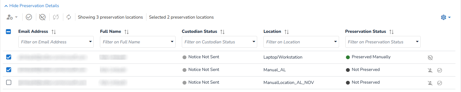 This allows IT to accurately reflect the technical state of preservation, while ensuring Legal has a complete, centralized view of coverage across both automated and manual locations.