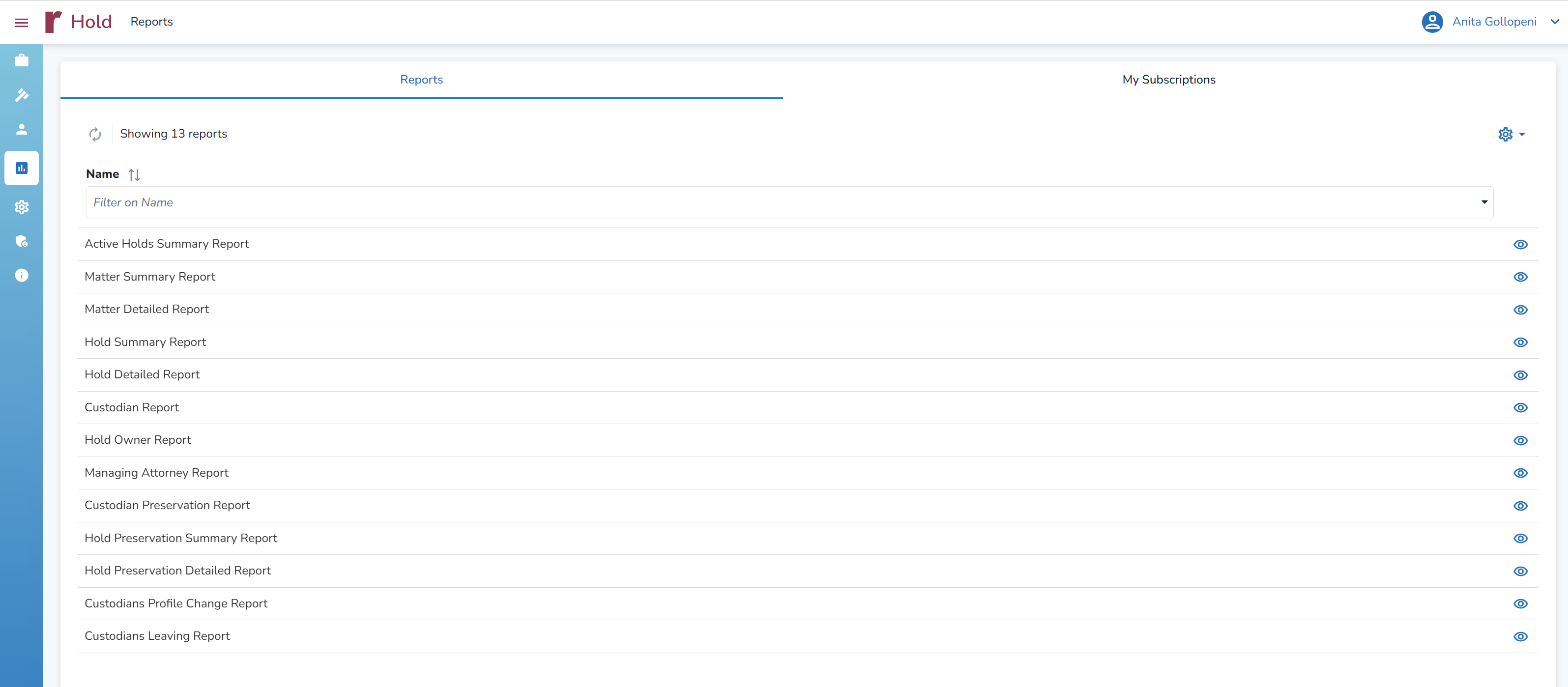 Filtering/sorting works the same on all pages. However, for the Custodian Report, you can simply paste a list of custodian names or email addresses in the custodian filter of a Report and all custodians are automatically selected. This saves time compared to manually selecting multiple custodians.