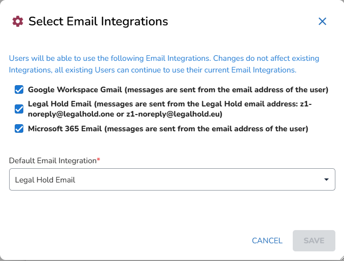 As an Administrator you can now use the option to select which email integration is allowed to be used by the users.