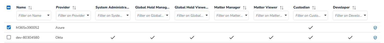 In Manage Users, you can see whether a role assigned to a tenant is trusted (green) or not (grayed out).