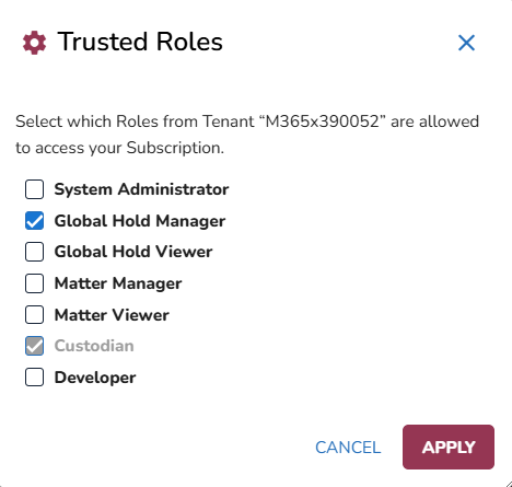 Define the trusted roles for this tenant and click Apply.