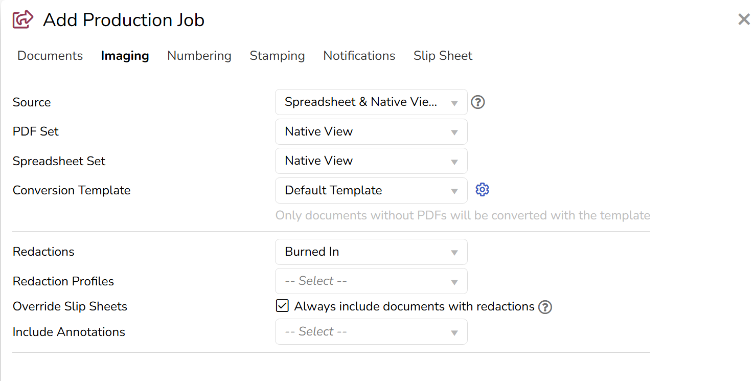 To produce burned-in spreadsheets redacted using Blackout, certain fields in the Add Production Job and Production Export Setup modals need to be populated with specific settings, detailed below.