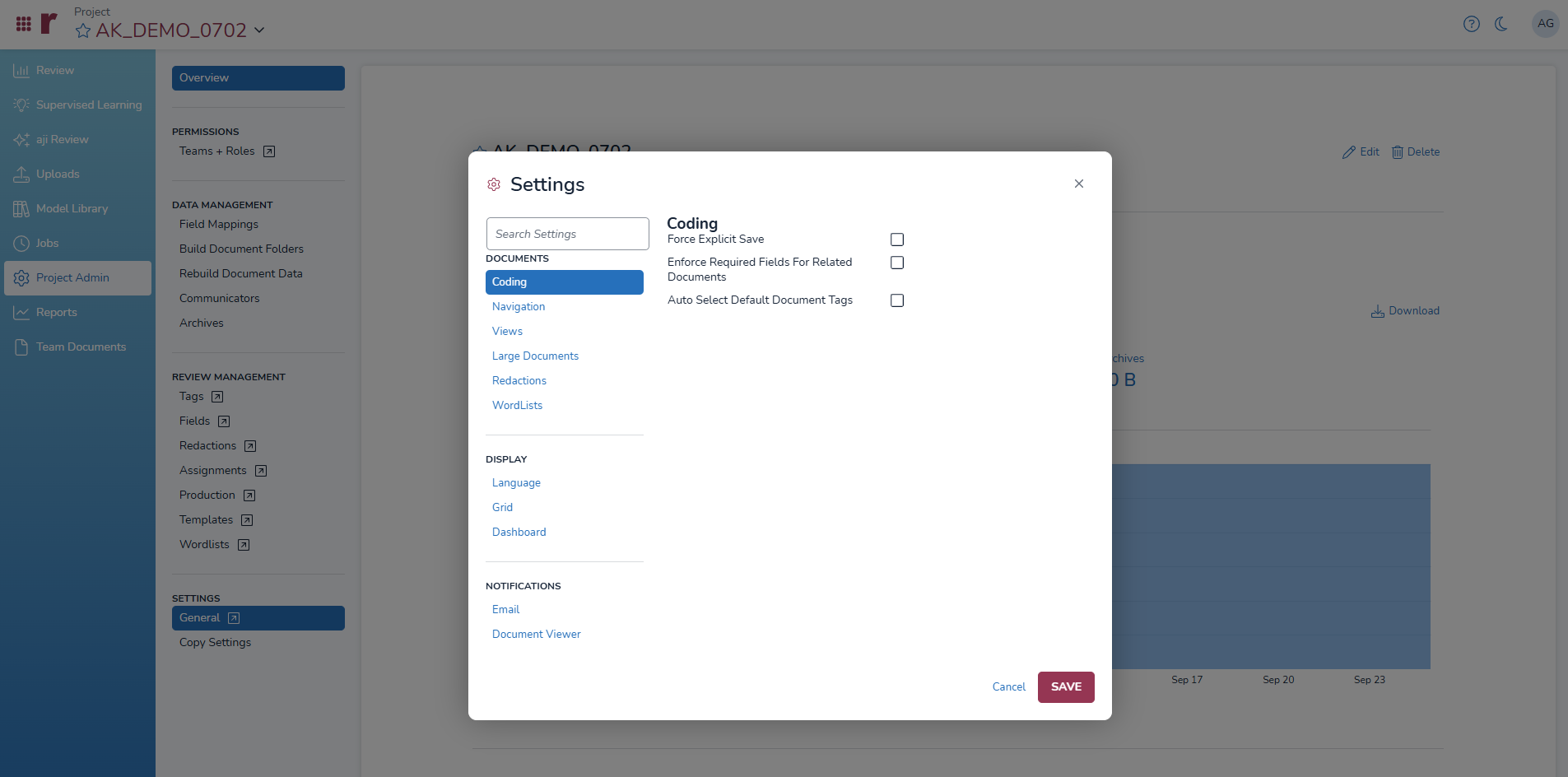 Force Explicit Save will require the reviewer to click the save icon at the extreme left of the Document Review toolbar to save any coding. The default unselected option will save all tag, folder, field, redaction or annotation coding by going to the Next or Previous document.
